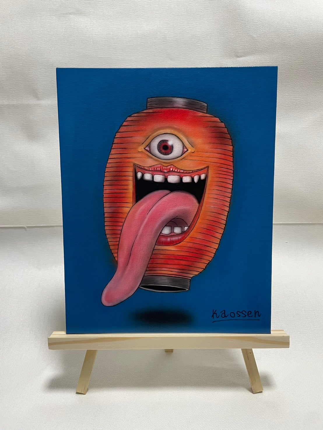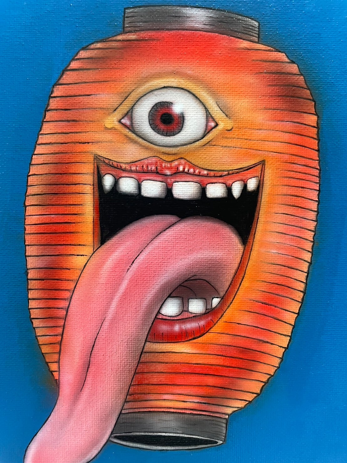 古くなった提灯に魂が宿って生まれる妖怪、「提灯お化け」。 今回はペロッと長い舌を出して驚かそうとしている様子を描きました ギョロリとした一つ目と、鮮やかなブルーの背景に浮かび上がる赤のコントラストがポイントです。 ちょっと不気味だけど、ポップでかわいらしい妖怪アートに仕上げました!